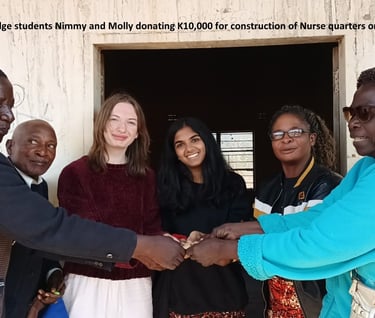 A donation of K10,000 was given by Nimmy and Molly , students of Socual sciences at the Cambridge University. The proceeds were handed over to the Senior Head lady and shall be used for the construction of Nurse quarters at the Smart Clinic which is one of the requirements by the Ministry of Health. Smart Villages needs more funds to ensure to complete the project and start operations. A kind request is made to you to see the ongoing projects pages to see progress and donate to us generously .